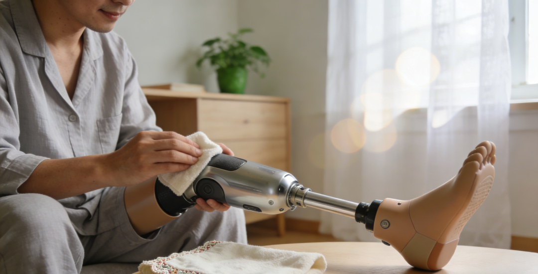 3. 呵护皮肤:用温水清洁并彻底擦干残肢,检查皮肤有无因潮湿或摩擦导致的任何红点或不适,并涂抹保湿霜。