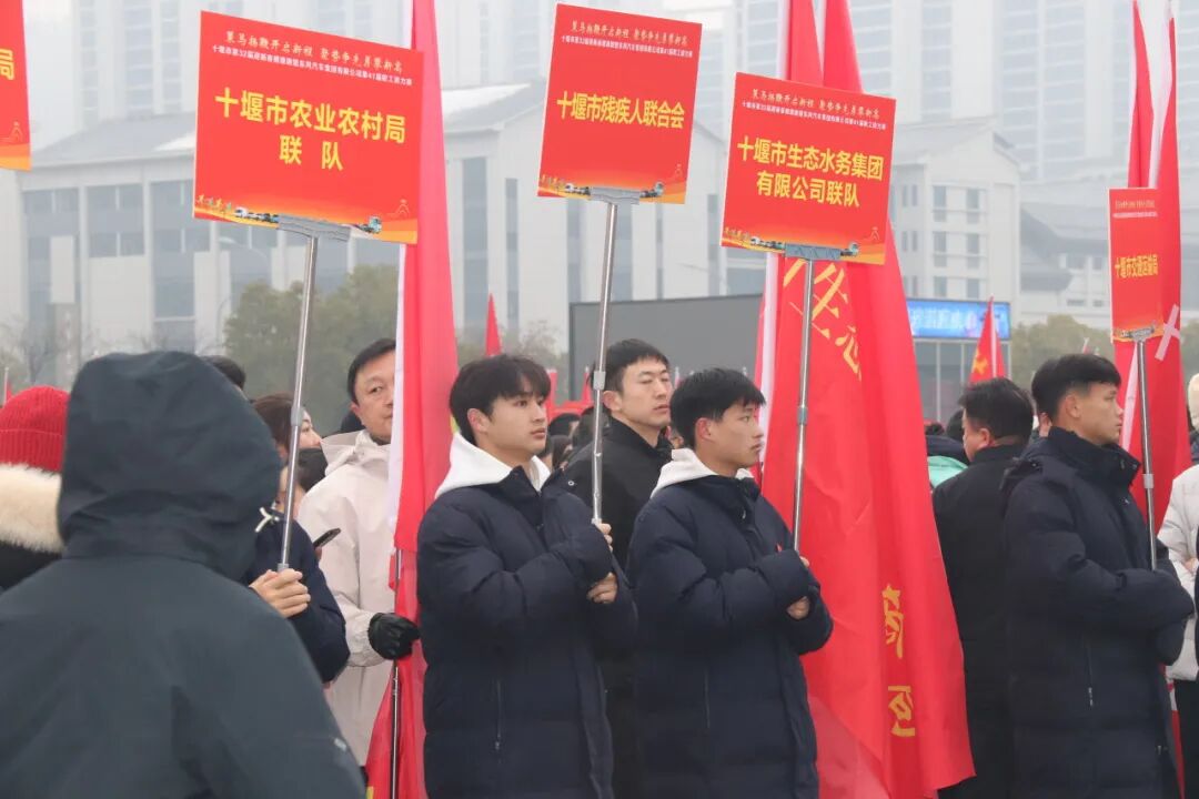春潮涌动万象新,1 月 24 日上午 9 时,十堰市第 32 届迎新春健康跑暨东风汽车集团有限公司第 41 届职工接力赛在奥体中心东广场启幕。十堰市残联联队亮相赛场,联队由市残疾人联合会与十堰市辅助器具适配服务中心组成,其中十堰市辅助器具适配服务中心 30 名员工参与,与全市 250 个方阵、12500 名参赛者一同奔跑迎新春。