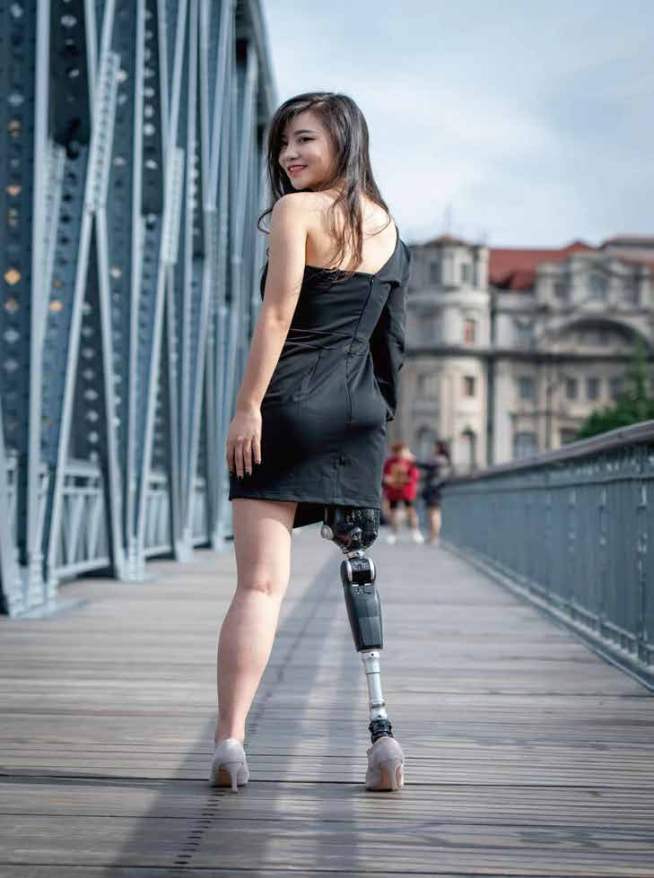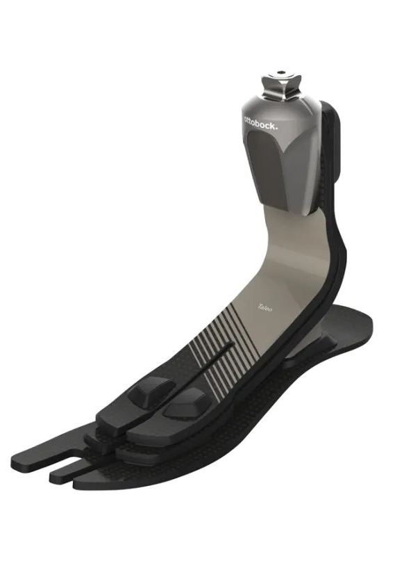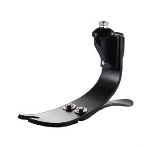假脚的主要功能是支撑肢体,在运动中产生推力,同时可代偿小腿三头肌和屈肌的作用。储能脚由于特殊的设计和材料在储能效果上远高于传统假脚,采用高弹性、高强度的碳纤维复合材料的储能脚因其质量轻,使患者行走时较为省力而广受欢迎。除此之外,踝关节以及足踝与小腿假肢之间的连接管也可以用碳纤维复合材料制作,同样能达到轻巧坚固的效果。