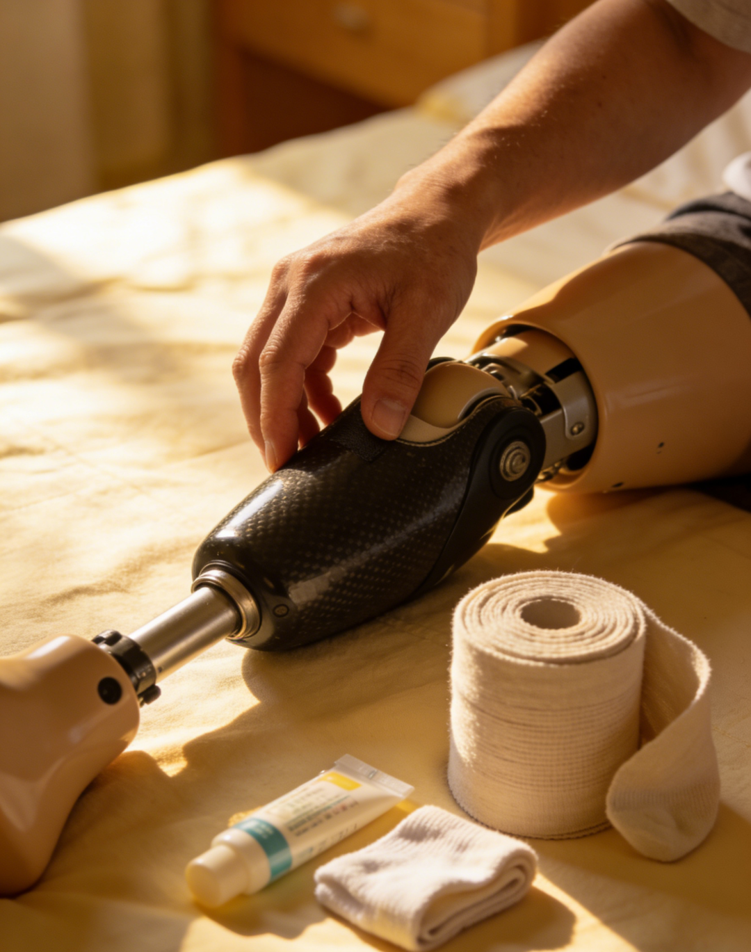 · 每日“裸肤时间”:每天脱下假肢后,给残肢至少15-30分钟完全裸露、自由呼吸的时间。